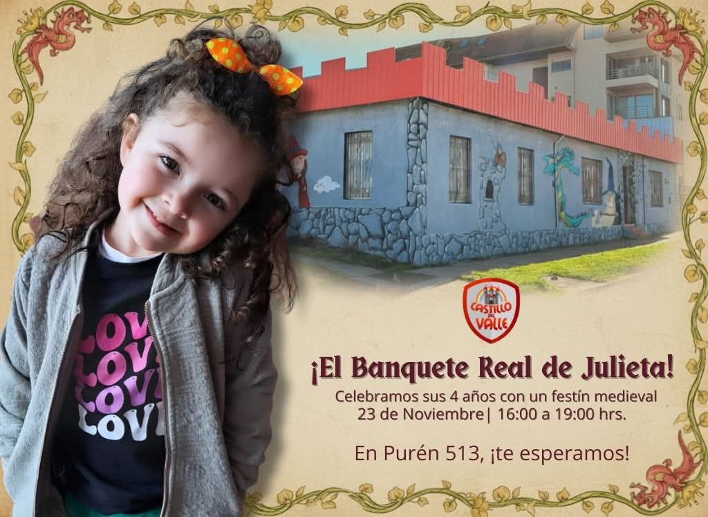 Castillo del Valle Angol se llenará de alegría nuevamente con la realización del “Banquete Real de Julieta”, una celebración que transformará este nuevo espacio de entretención angolino en un escenario encantado donde la ternura, la imaginación y la infancia serán las protagonistas.