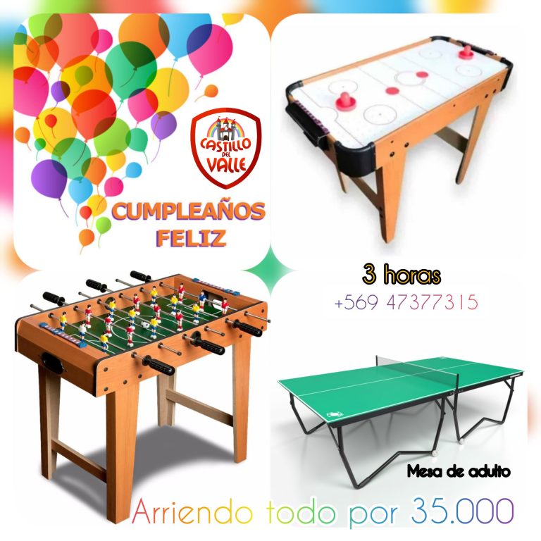 Arrienda una mesa de ping pong, un taca taca y una mesa de air hockey para disfrutar al máximo en cumpleaños, reuniones familiares o cualquier evento especial.